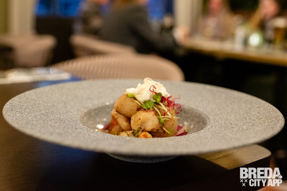 Daarnaast worden er Coquilles & Gamba's, geserveerd met witlof, zilverui, schuim van Parmezaan en een crumble van Macadamia, perfect in balans. Ook de Thom Kai Kai soep met garnalen en een capresetorentje van tomaat en mozzarella zijn een heerlijke start.