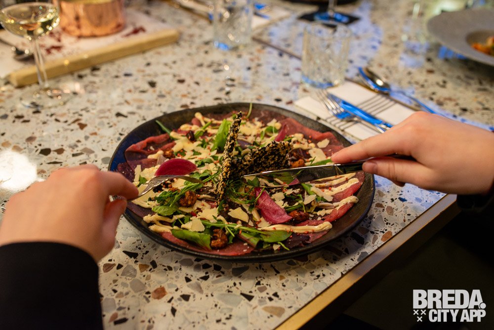 We krijgen hiernaast ook de klassieke carpaccio, met gekarameliseerde noten en een frisse truffeldressing, die het gerecht perfect afmaakt. We kletsen en we genieten van de sfeer in het mooie restaurant. Het restaurant heeft een geweldige nieuwe uitstraling gekregen.