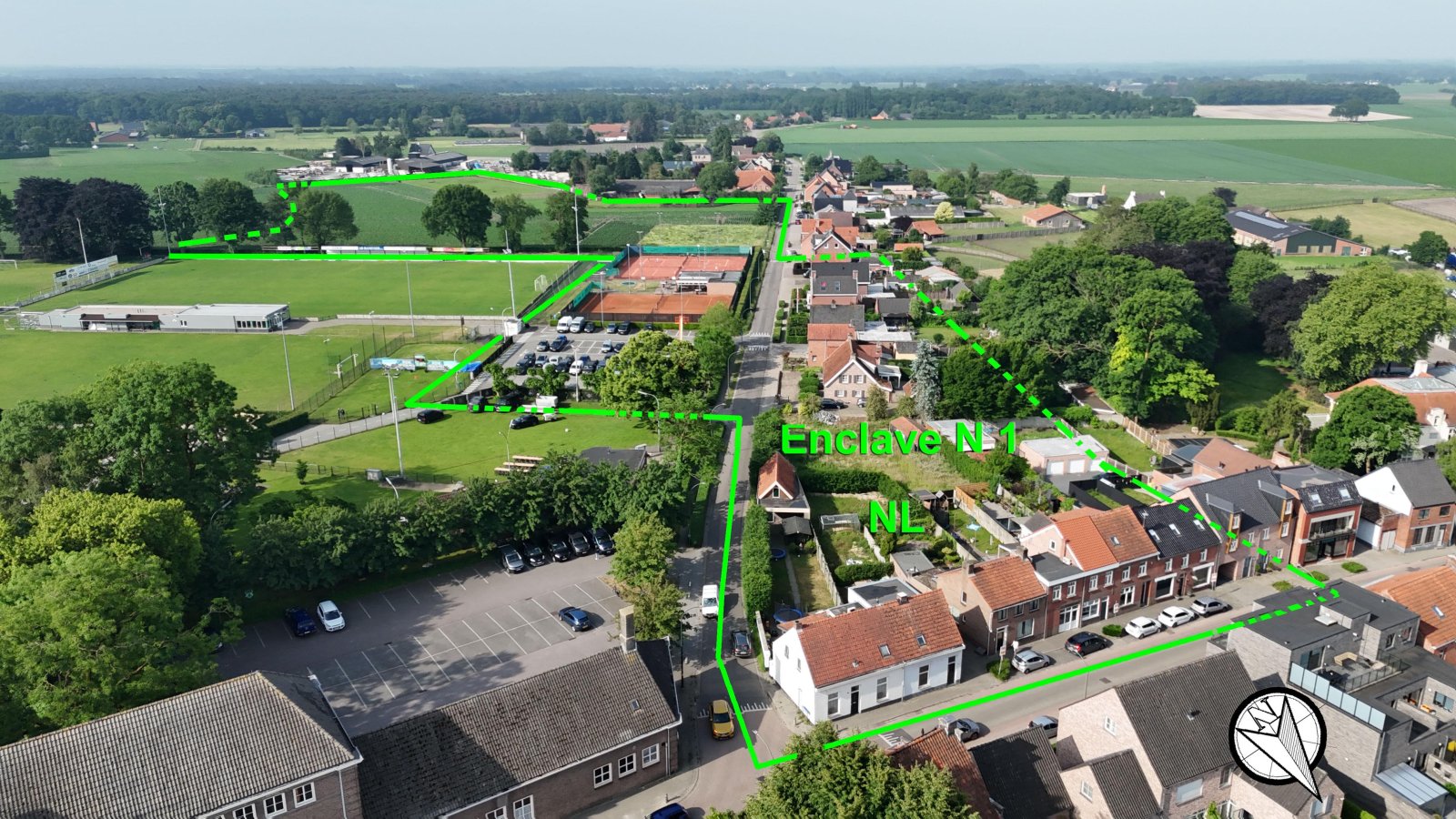 N1 is qua oppervlakte de grootste Nederlandse enclave. Wereldwijd ligt zij als counterenclave (een enclave in een enclave) het dichtst bij het moederland. Die afstand bedraagt slechts 20,46 meter! Waar wij nu staan, bevindt de enclave N1 zich rechts van de weg. De rijksgrens volgt het midden ervan. Links van die weg liggen in de Belgische enclave H1 de parking van het Cultuurcentrum en het lokaal met oefenterrein van de hondenvereniging.