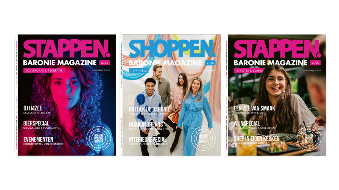 In het Stappen Magazine vind je honderden lunchrooms, koffietentjes, cafés, restaurants en hotels. In het Shoppen Magazine zijn alle winkelgebieden en de leukste winkels uitgelicht. Daarnaast kun je meer lezen over de hotspots van de Baronie en verschillende leuke specials!